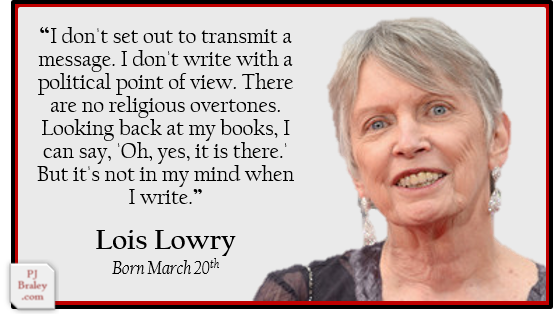 Lois Lowry, award-winning American writer, including two Newbery Medals 1990 & 1994.