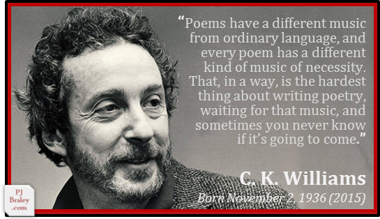 Charles Kenneth "C. K." Williams, award-winning American writer and poet; Pulitzer Prize for Poetry 2000, National Book Award 2003.